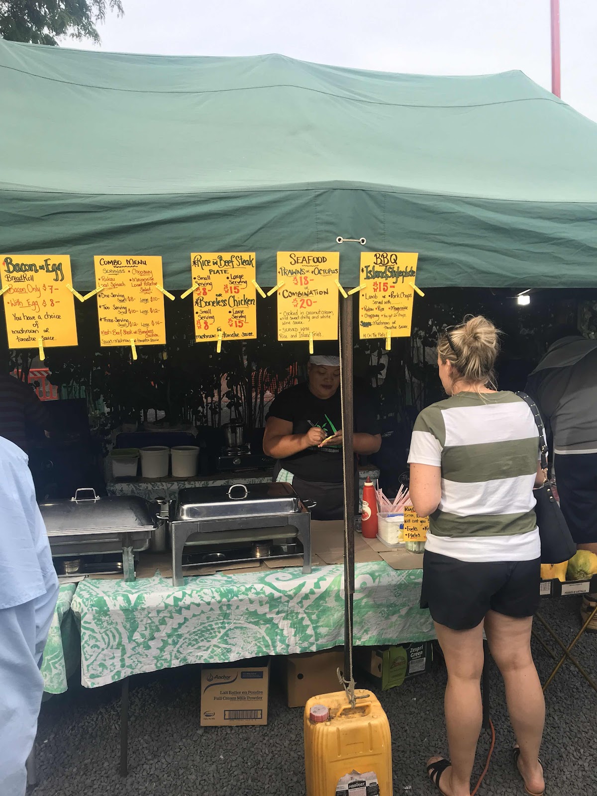 Tilbake til Muri Beach, hadde de et marked på søndager. For det meste boder med ulike matretter, og litt underholdning var det også. Jeg prøvde å se etter noe mer autentisk, og dropped dermed pizza og andre mer internasjonale retter. Jeg endte derfor opp med denne.